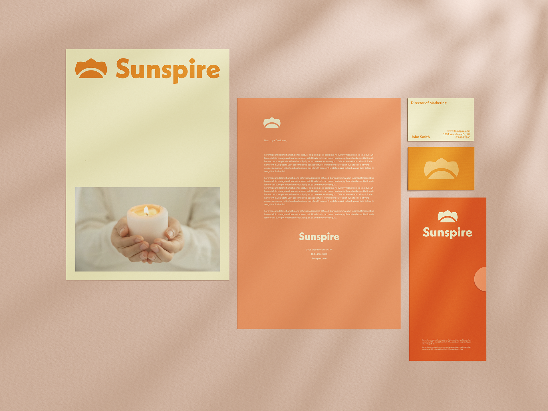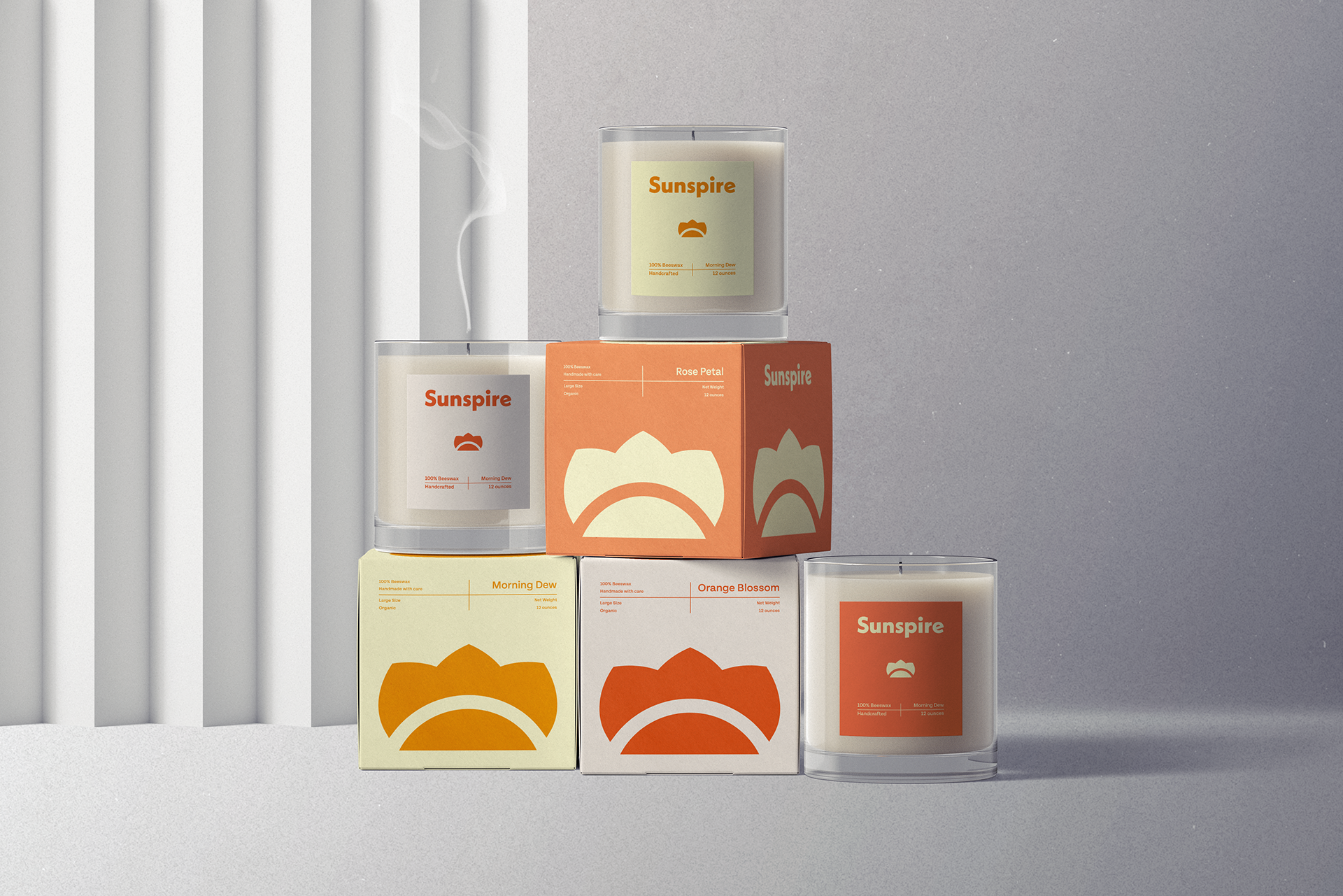 Sunspire is a premium scented beeswax candle company looking to differentiate from their competitors, utilizing a comprehensive visual identity that strays away from the standard